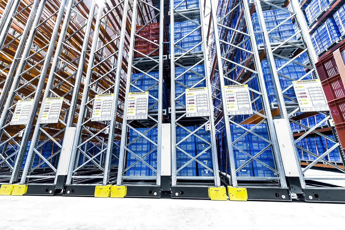 Die Stellplätze verteilen sich auf 6 Anlagen mit insgesamt 50 Wagen, wobei ein Wagen bis zu 260 Tonnen tragen kann. Auch die Höhe nutzt Grolleman. In fünf Ebenen übereinander wird bis zu einer Höhe von 10,5 m gelagert. Auf Wunsch des Kunden verstärkte SSI Schäfer die erste Trägerebene, um sie für extra schwere Paletten mit einem Gesamtgewicht bis zu 5.400 kg auszulegen. Wareneingang und zentraler Gefriertunnel befinden sich in einem bereits bestehenden Kühlhaus. Einmal tiefgefroren, wird die Ware über eine geschlossene Fördertechnik durch das Dach in das neue Kühlhaus transportiert. Ein Lift befördert die Paletten in die Frontzone des neuen Kühlhauses, wo sie in die Verschieberegalanlage eingelagert werden. Die von Elektromotoren angetriebene Regalanlage wird von einem WMS gesteuert, sodass sich die Gassen automatisch öffnen und die Stapler ohne Zeitverlust Paletten ein- und auslagern können.