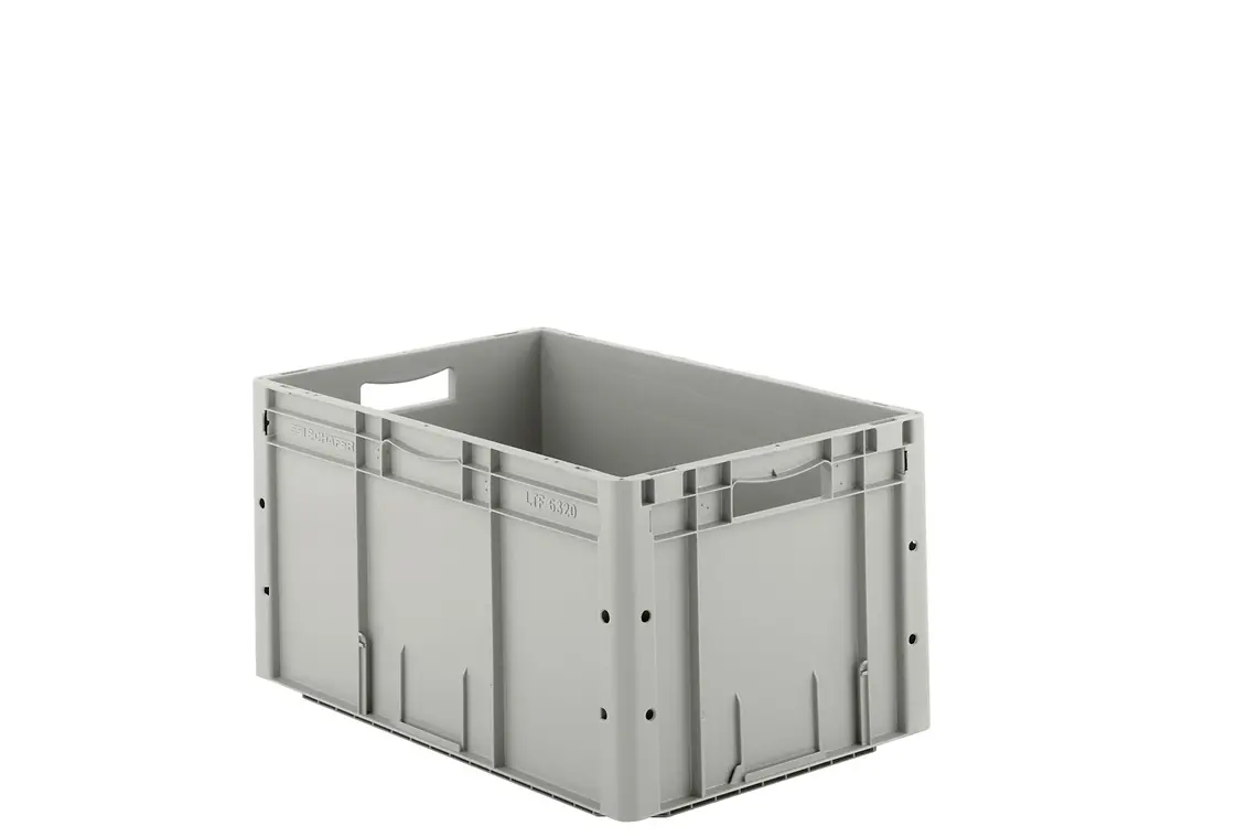 Die SSI SCHÄFER Eurobehälter aus Polypropylen eignen sich als Lager-, Kommissionier- und Transportbehälter. Mit ihren Grundmaßen von 200 x 150 mm bis 800 x 600 mm sind sie exakt auf die Maße von Europaletten abgestimmt. Je nach Ihren Anforderungen bieten wir Behälter in verschiedenen Höhen und Varianten an. Die Kästen sind stapelbar, die Griffe an den Stirnseiten ermöglichen eine ergonomische Handhabung.