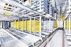 For special requirements SSI SCHAEFER has also developed a new type of inspection system for fully automated empties detection based on its WAMAS® Vision software, programmed special algorithms for the control software, and tailored the features of the HBW. Background: The empties pallets returned from retailers to the logistics center consist mainly of a mix of products and bottle sizes. However, the production systems fill by product. The installed empties management for reusable bottles includes an intelligent empties assessment and material flow control as well as the system technology. In the goods-in area, two cameras automatically detect and evaluate the degree to which each pallet is mixed and evaluate the case structure. WAMAS® uses the data from the Vision system to determine how many cases of the relevant empties can be found on the incoming empties pallet and, based on the degree in which the empties are mixed and the needs of the production lines, controls their further transport. The needs-based supply of filling lines with empties is a central function of the new logistics system.