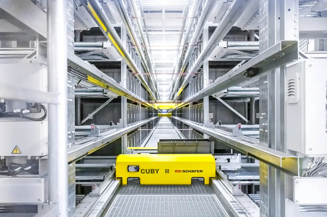 “We benefit from optimized small-parts picking processes – one of the key advantages of the implemented solution. The SSI Cuby makes an important contribution: efficient, precisely fitting staging of picking bins. This allowed us to increase productivity by an incredible 40 percent.”