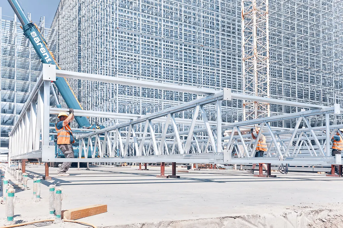 SSI SCHAEFER was chosen to carry out the entire steel construction. Around 4,200 tons of steel were supplied for the construction of the satellite warehouse. In this project, we advised on the intralogistics solution, created the design of the silo, supplied the steel sections, supervised the construction of the steel structure and provided project management by an IPMA-C certified project manager.