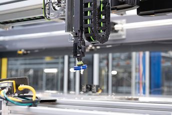 Our portal robot uses compact suction knobs instead of finger-shaped grippers. That allows it to reach every corner of a container and grip even the smallest part. The speed adjusts individually to the specific product to save valuable time! With SSI Piece Picking, you can pick up to 1,200 small parts per hour.