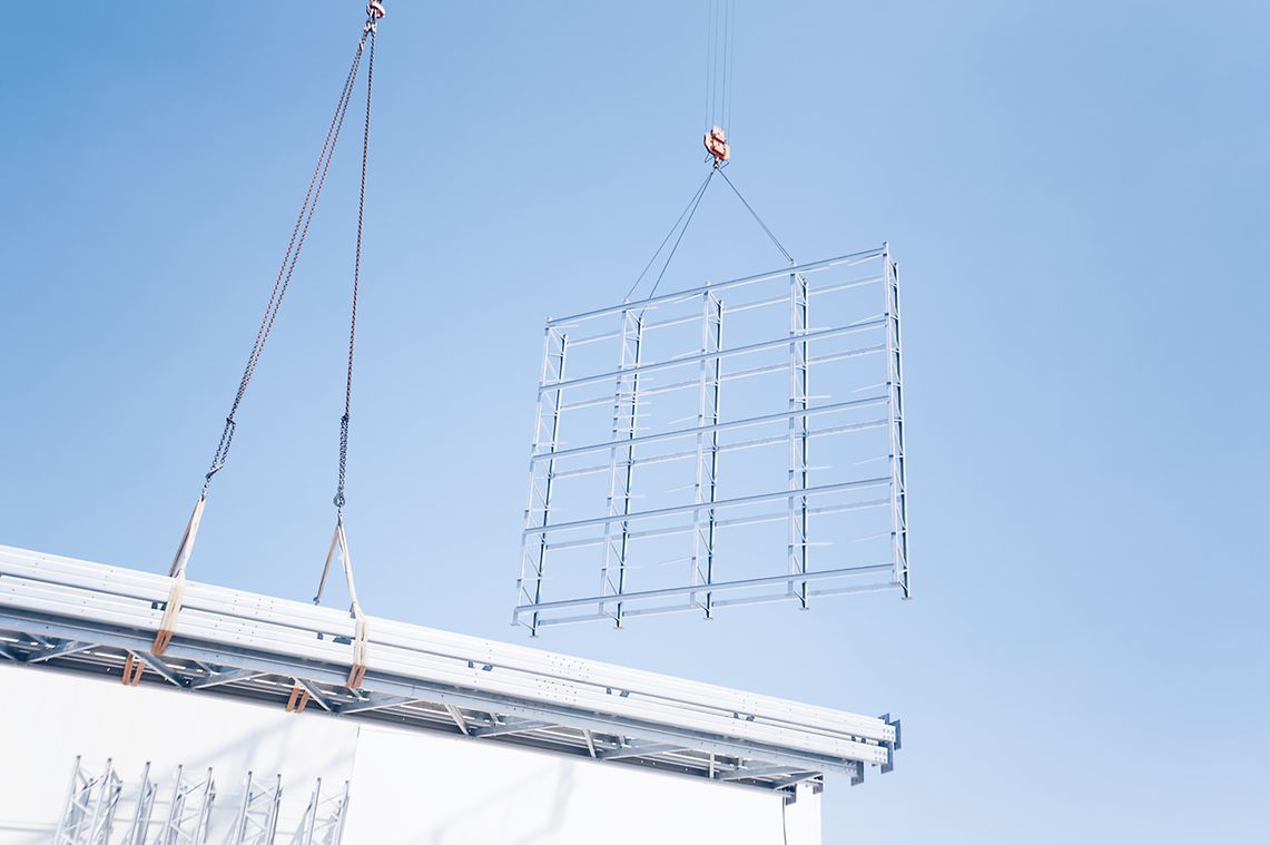 The entire steel structure was planned by the engineers at SSI SCHAEFER, with the various subcontractors - from the construction company to the air conditioning and refrigeration supplier to the roof and wall supplier - being coordinated in advance. In addition to the construction of the steel structure, the external weather conditions at different building heights also had to be taken into account and the steel structures had to be able to support the wall and the roof with the solar collectors.
