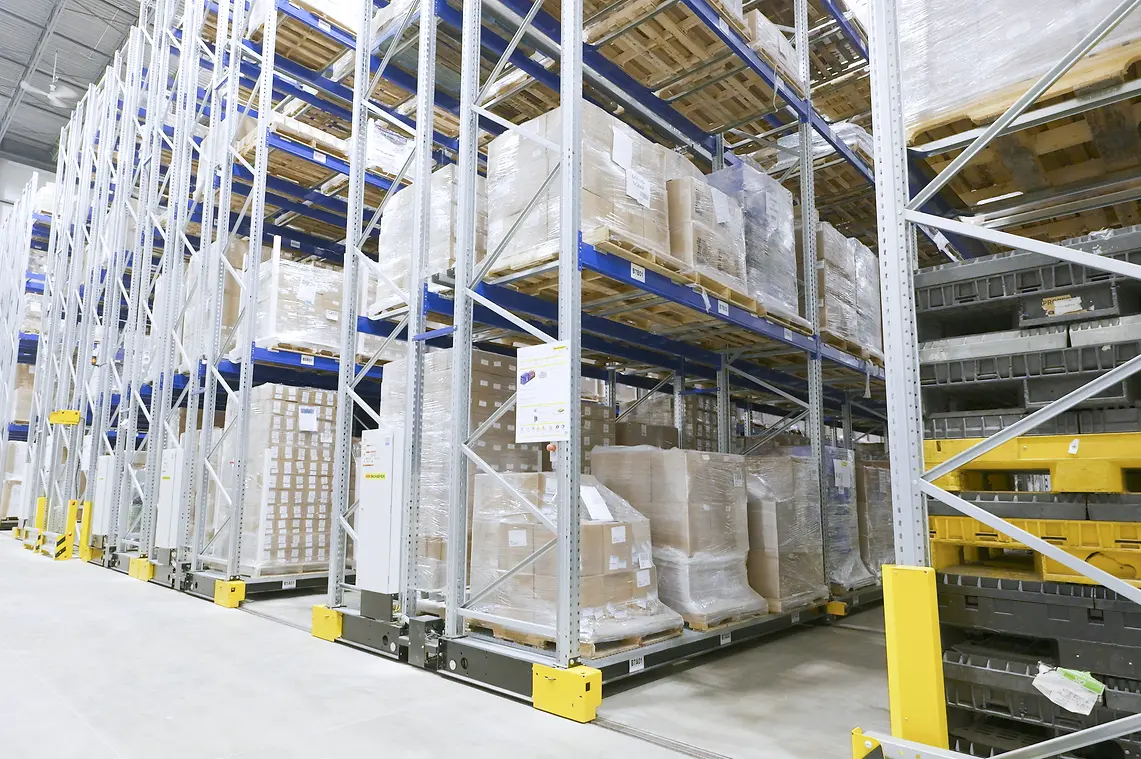 Three ESX mobile racking systems reduce aisle space and improve overall warehouse density.
