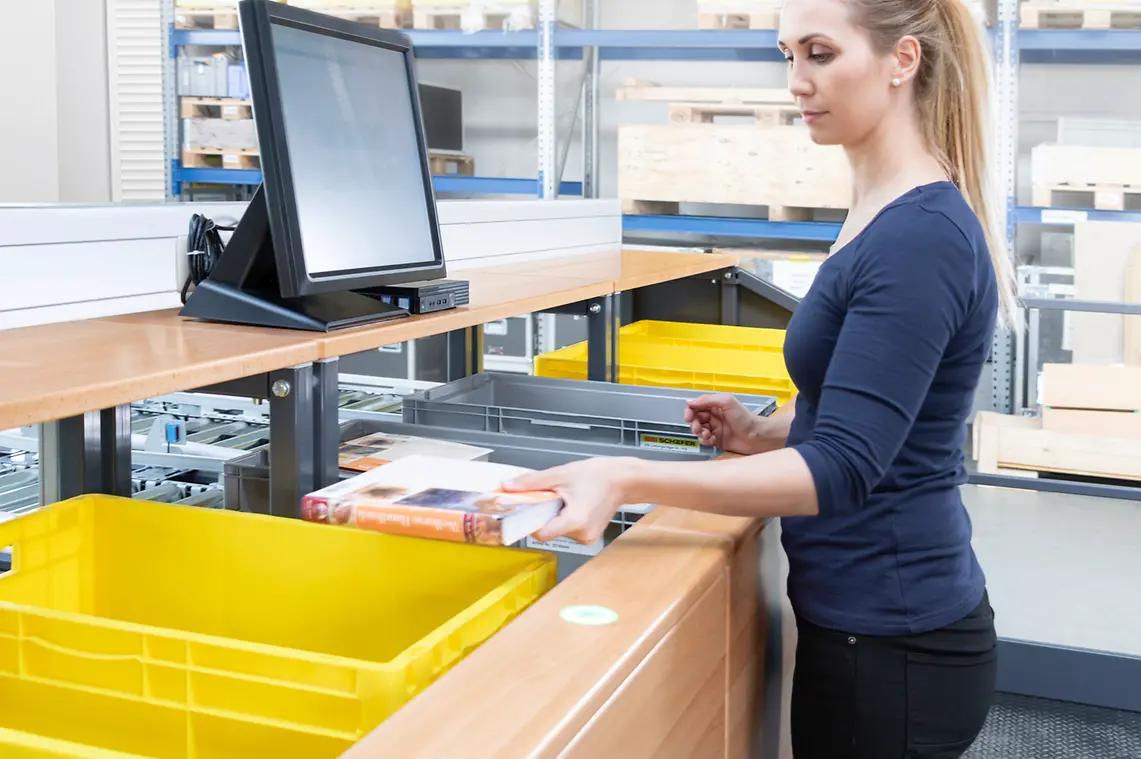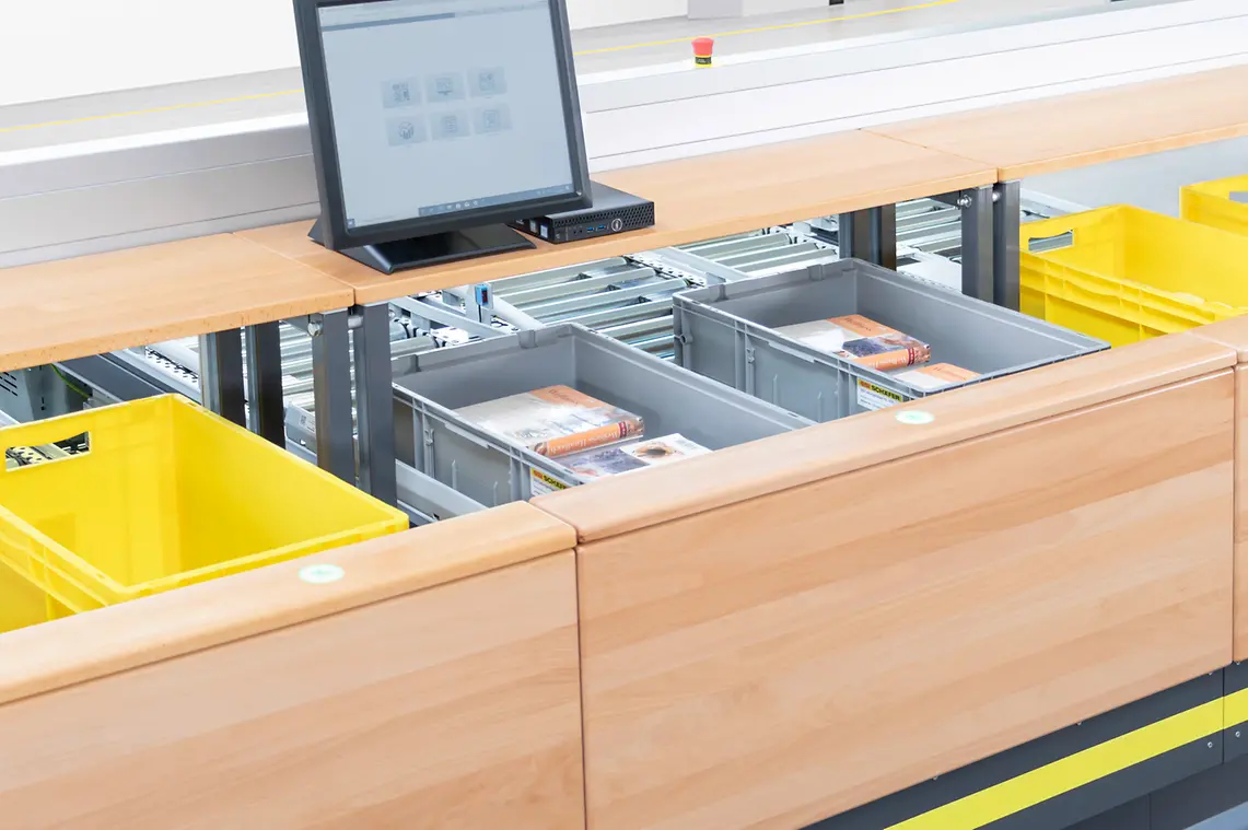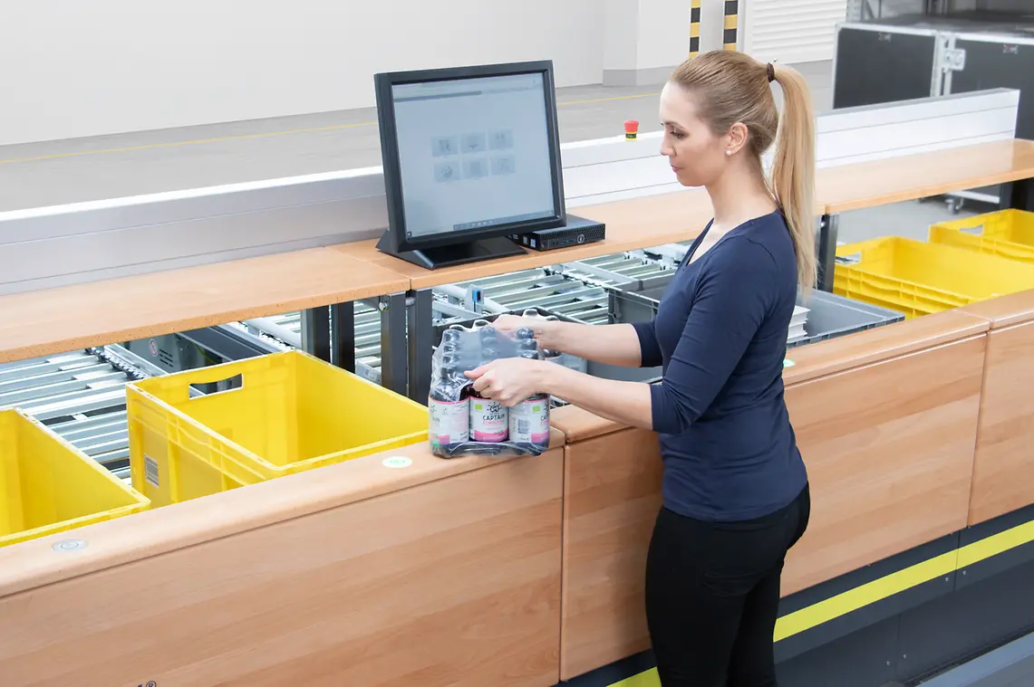 Parallel picking in four order totes (2 - 6 possible) with a picking performance of 800 picks per hour