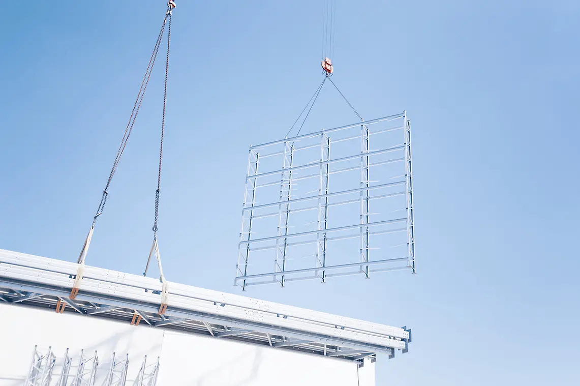 The entire steel structure was planned by the engineers at SSI SCHAEFER, with the various subcontractors - from the construction company to the air conditioning and refrigeration supplier to the roof and wall supplier - being coordinated in advance. In addition to the construction of the steel structure, the external weather conditions at different building heights also had to be taken into account and the steel structures had to be able to support the wall and the roof with the solar collectors.