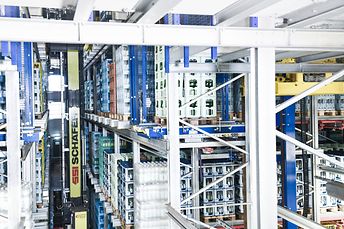 Para requisitos especiales, SSI SCHAEFER también ha desarrollado un nuevo tipo de sistema de inspección para la detección totalmente automatizada de vacíos basado en su software WAMAS® Vision, ha programado algoritmos especiales para el software de control y ha adaptado las características del HBW. Antecedentes: Los palés vacíos devueltos por los minoristas al centro logístico están compuestos principalmente por una mezcla de productos y tamaños de botellas. Sin embargo, los sistemas de producción llenan por producto. La gestión de envases vacíos instalada para botellas reutilizables incluye una evaluación inteligente de los envases vacíos y un control del flujo de materiales, así como la tecnología del sistema. En la zona de entrada de mercancías, dos cámaras detectan y evalúan automáticamente el grado de mezcla de cada palet y evalúan la estructura de la caja. WAMAS® utiliza los datos del sistema de visión para determinar cuántas cajas de los envases correspondientes se encuentran en el palé de envases entrante y, en función del grado de mezcla de los envases y de las necesidades de las líneas de producción, controla su transporte posterior. El suministro de envases a las líneas de llenado en función de las necesidades es una función central del nuevo sistema logístico.