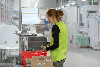 The goods-to-person system enables operators to pick directly to the order containers from the two-level Advanced Pick Stations. The ergonomic solution from SSI SCHAEFER has been specifically developed for this task and makes goods to person picking highly efficient. It provides clear user guidance and monitors picking accuracy via light curtains to ensure the right product is placed in the right order bin.