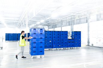 "Le principal argument de vente des opérateurs est la norme de qualité élevée qui accompagne les conteneurs SSI SCHÄFER et le label "Made in Germany". La longévité, le faible taux de défaillance, la construction robuste, la manipulation simple mais sûre et un rapport qualité-prix impressionnant, ne sont que quelques-uns des autres avantages. Nos conteneurs pliables/rabattables, comme ceux utilisés par Hema, offrent également à un niveau de performance élevé et constant à travers les années, quelles que soient les températures ambiantes - ce qui témoigne une fois de plus de la qualité des matériaux et de la robustesse éprouvée de la construction. Le double bord renforcé du conteneur offre une protection exceptionnelle contre le gauchissement et permet de toujours empiler les conteneurs. De même, les zones charnières sont toujours protégées même sans le couvercle. Ce n'est qu'une des raisons pour lesquelles les conteneurs ont une si longue durée de vie et un si faible taux de défaillance", explique Christine Jorzik, directrice des systèmes de conteneurs chez SSI SCHAEFER. "Nos conteneurs pliables/rabattables FKE 6285 et FKE 6320 sont utilisés par nos clients dans le monde entier 24 heures sur 24, 365 jours par an". La base nervurée et renforcée implique également que les conteneurs sont parfaitement conçus pour la manutention manuelle dans les magasins et pendant le transport, ainsi que pour le système de manutention automatisé de l'entrepôt central de Hema. "Nous utilisons un seul type de conteneurs pour l'ensemble des processus, depuis l'entrepôt jusqu'à la chaîne d'approvisionnement", explique Michel van Leeuwen. "L'utilisation des mêmes conteneurs tout au long du processus permet de ne pas perdre de temps à reconditionner les marchandises ; la palettisation uniforme et les processus de transport sécurisés sont assurés grâce aux dimensions standard des conteneurs ; et il n'y a pas de déchets d'emballage dans les magasins". En outre, l'utilisation de conteneurs réutilisables réduit les coûts de transport. Lors de l'envoi des commandes aux magasins, les conteneurs peuvent être facilement empilés et palettisés pour utiliser de manière optimale l'espace des quais de chargement des camions. Et une fois vidés, les conteneurs peuvent être rabattus pour réduire leur volume de 80 % sur le trajet du retour.