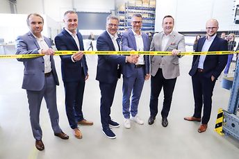 De gauche à droite : Jan Skypala, chef d'équipe Pièces de détachées, Hranice ; Radek Nemec, chef du département Pièces détachées, Hranice ; Elie Zita, SVP de l'unité commerciale Services Client ; Christian Puntigam, Responsable mondial des Services de pièces détachées ; Robert Selzer, chef de l'usine de Hranice ; et Gerald Insupp, Responsable mondial de la gestion des pièces détachées, lors de la réouverture officielle de l'entrepôt de pièces détachées à Hranice, en République tchèque.
