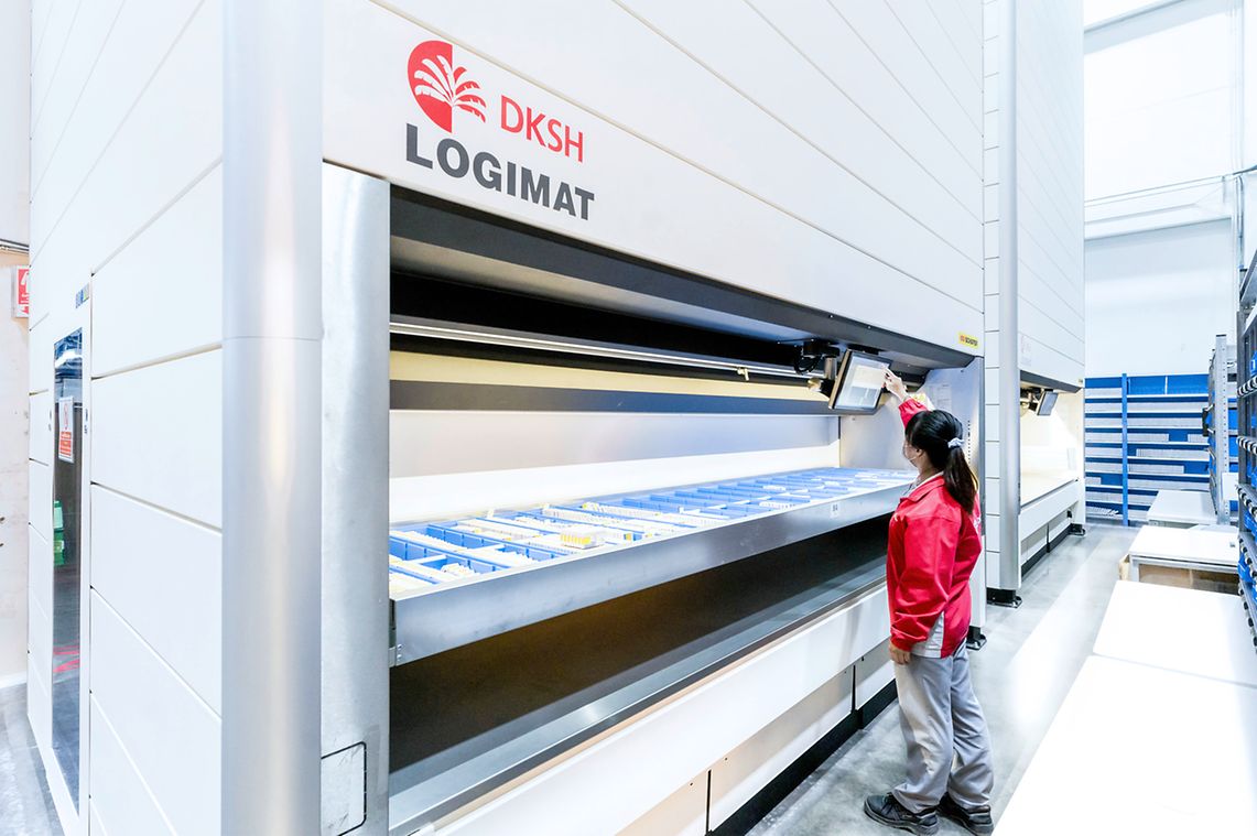 La pierre angulaire de la solution est la tour de stockage verticale SSI LOGIMAT® d'une hauteur de 10 mètres. Elle offre une capacité de stockage étonnante de plus de 10 500 articles. Ce système dynamique fonctionne selon le principe efficace du « goods-to-person ». Il en résulte une optimisation des processus de stockage et de prélèvement et une amélioration du débit moyen de plus de 13 % par rapport à l’opération précédente.