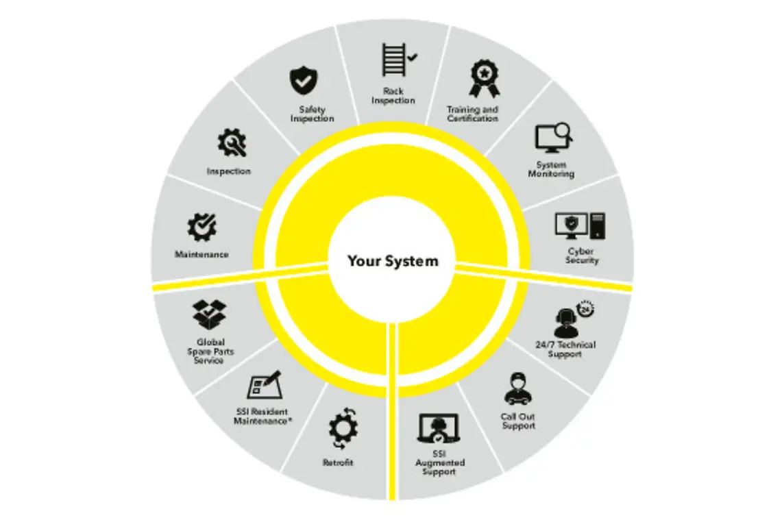 Performa dan ketersediaan maksimum di seluruh siklus hidup sistem - SSI SCHAEFER menawarkan solusi khusus untuk memperpanjang masa pakai sistem Anda.
