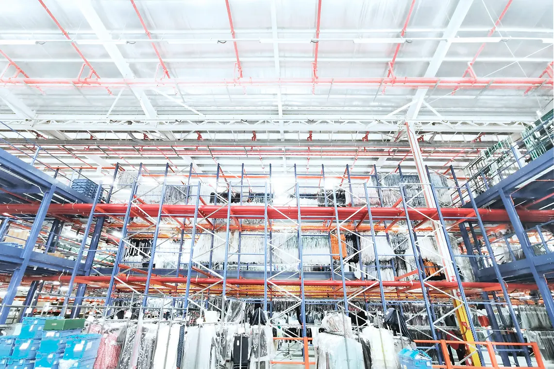 Bagaimana garmen akan dijual, kain garmen, dan asal tujuannya akan selalu mengarah pada dilema pengecer "menggantung atau mengemas" dalam rantai pasokan mode. Solusi penyimpanan yang dipikirkan dengan matang yang dikembangkan untuk Kerry Logistics dikonfigurasikan untuk menyimpan kedua garmen dalam kotak kemasan datar dan Garment on Hangers (GOH). Apakah pakaian tersebut dipindahkan melalui beberapa atau semua rantai pasokan di gantungan, atau dalam beberapa tahap rantai pasokan, pakaian tersebut dapat ditempatkan di dalam karton saat dipasang ke gantungan, alih-alih digantung di rel atau tali, gudang baru Kerry Logistics sistem penyimpanan dapat menampung. Selain itu, Mezzanine dilengkapi dengan sistem jaring yang dipasang sebagai fitur keamanan untuk melindungi staf gudang yang bekerja di tempat yang lebih tinggi, memastikan lingkungan yang lebih aman di gudang.