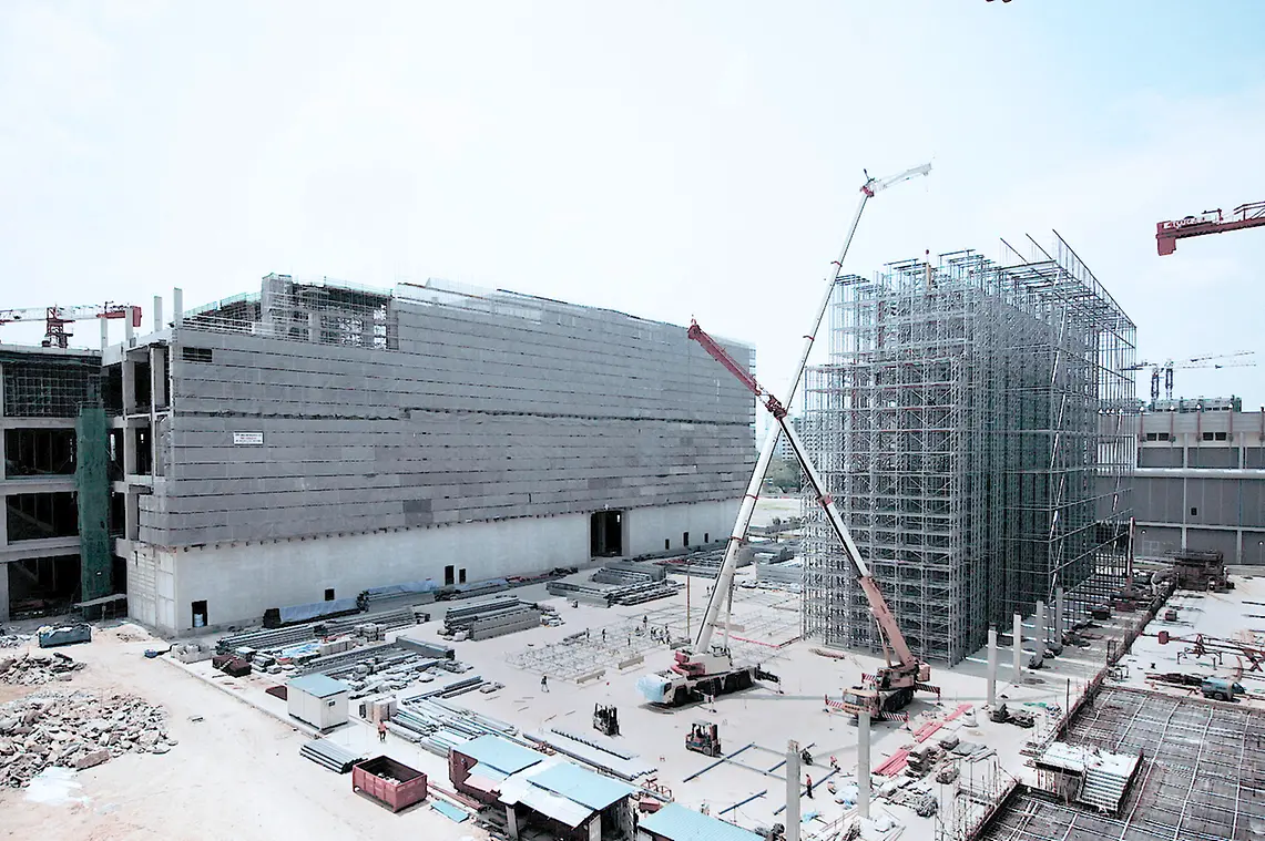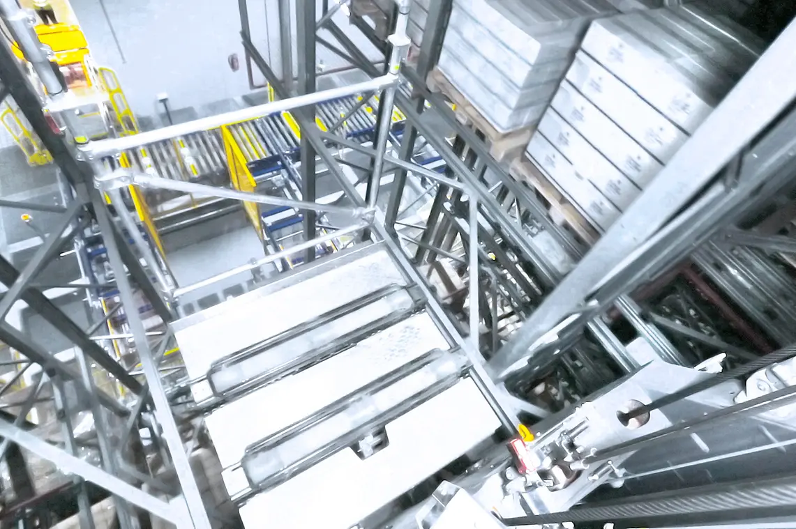 Fasilitas rak 50 meter YCH Group dibangun di atas kerangka alur kerja otomatis yang ramping untuk mendukung operasi yang cerdas dan hemat tenaga kerja. Dalam mengejar logistik berkinerja tinggi dengan posisi Singapura sebagai pusat logistik terkemuka, gudang high-bay di Jurong Innovation District dilengkapi dengan 18 mesin pengambilan penyimpanan (SRM) SSI Exyz yang hemat energi untuk secara bersamaan menyimpan dan mengambil palet untuk aliran inventaris yang mulus.