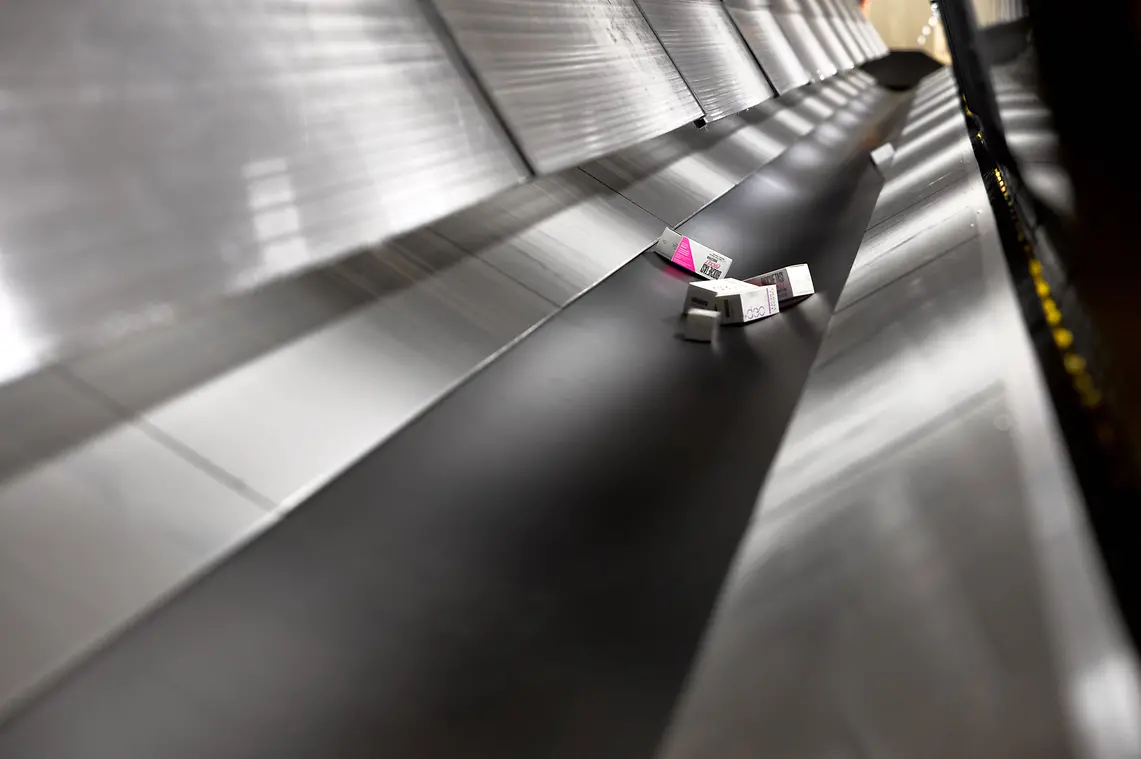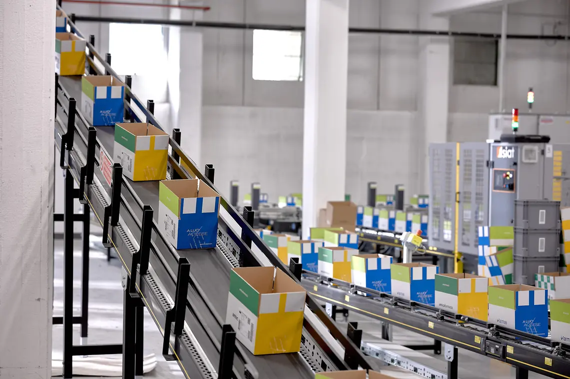 L’intero flusso di evasione ordini si basa su un concetto “pick & pack” in quanto gli articoli prelevati vengono direttamente inseriti all’interno delle unità di spedizione (cartoni) che vengono formati ed etichettati automaticamente e, mediante un sistema di convogliamento che si estende per quasi 500 metri lineari, raggiungono le varie aree di picking.