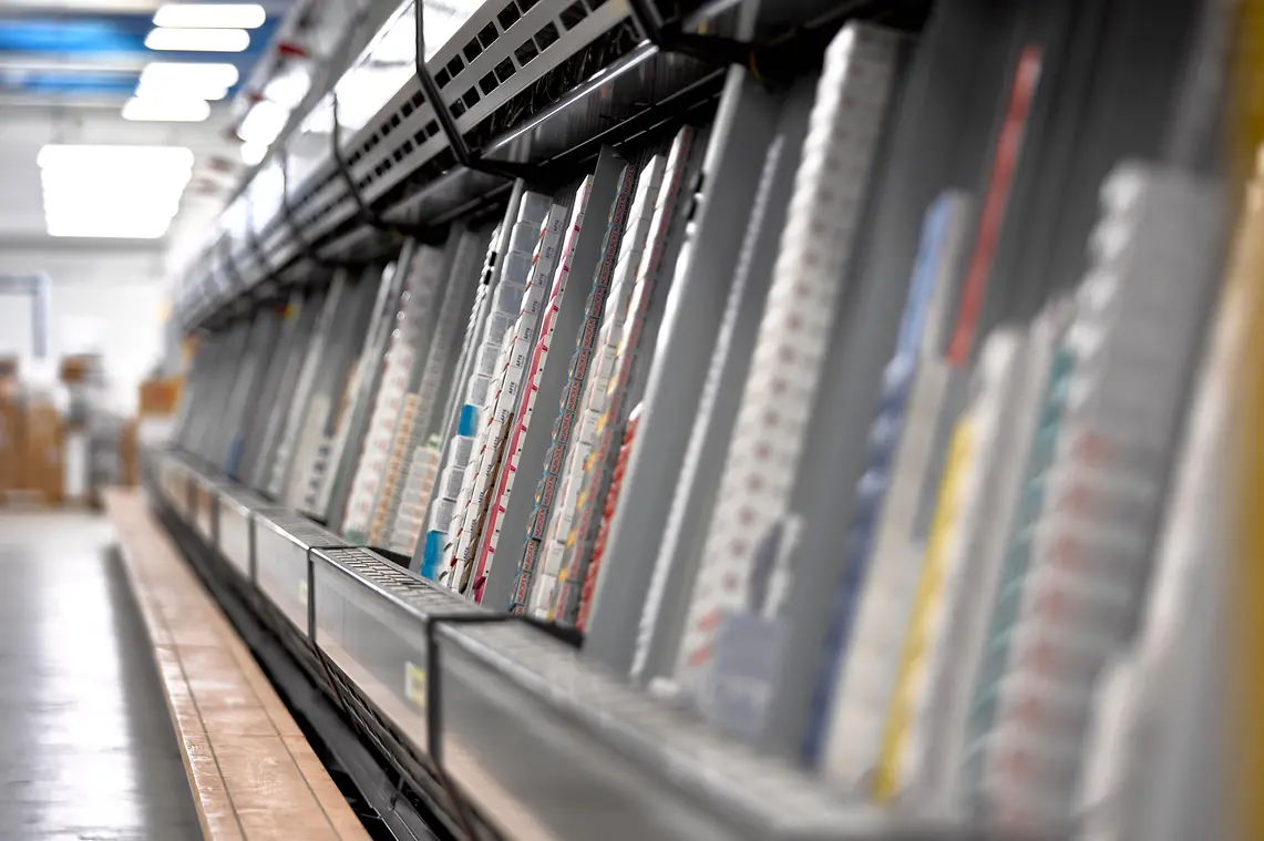 Il magazzino di Nichelino si estende su una superficie di 13.000 mq. Il sito riceve in ingresso giornalmente 10.000 righe, corrispondenti a circa 60.000 pezzi, di cui l’8% sono articoli acquistati dalla distribuzione intermedia sulla base di ordini già ricevuti.