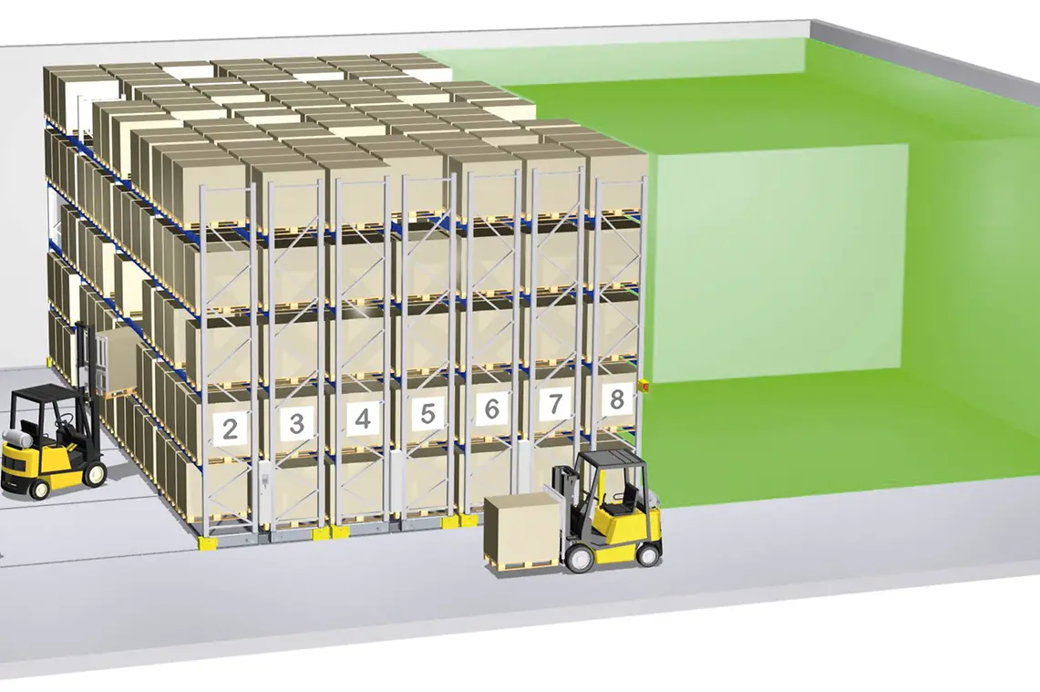Pallet racks in conventional arrangement