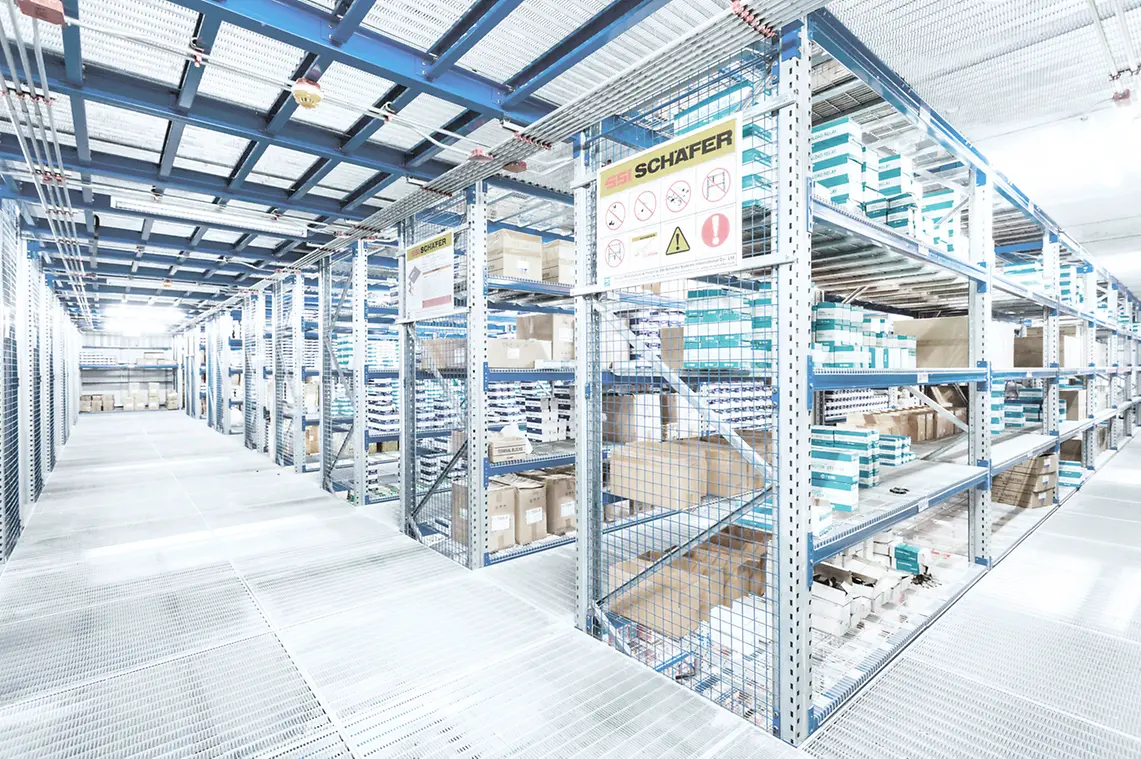 메자닌 시스템의 설계 옵션은 거의 무제한의 구성 가능성을 제공합니다. Interlock 600 Long-span 쉘프 시스템의 다양한 변형을 갖춘 자체 지지 구조는 치수 및 부하 기능과 관련된 모든 요구사항을 충족합니다. 광범위한 데크 및 액세서리 옵션을 통해 모든 레벨에서 최고의 내구성, 더 나은 화재 안전 및 환기 요구사항을 모두 충족할 수 있습니다. 또한 플랫폼에 통합된 중앙 계단과 화물 승강기는 모든 층에 접근할 수 있습니다.