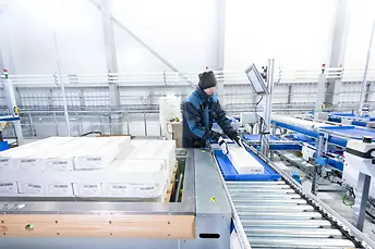 고도로 자동화된 물류 센터는 상온과 냉동 두 가지 온도 구역으로 나뉘며, 전체 28,700개의 팔레트 보관 위치, 고효율 크로스도크 및 통합 구역을 갖추고 있습니다. SSI 케이스 피킹 솔루션은 팔레트의 자동 작업을 보장합니다.