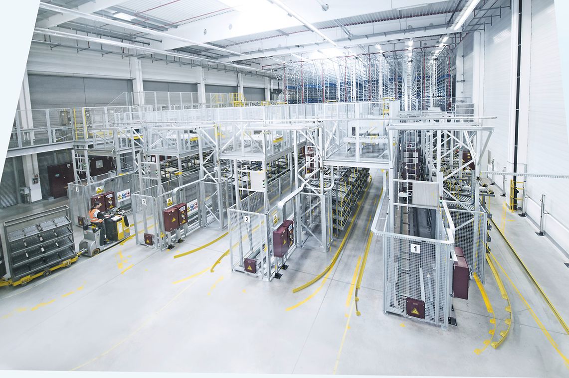 다운스트림 프로세스와 공장 제어는 SAP을 통해 이루어집니다. 또한 5열 고천장 창고와 7열 Miniload 시스템 자동 입출고 장비가 생산에 필요할 때까지 다양한 자동차 부품을 보관합니다. 다양한 컨베이어 시스템 구성요소와 로봇을 이용한 자동 팔레트 하역으로 자재 흐름의 높은 효율성을 실현합니다.