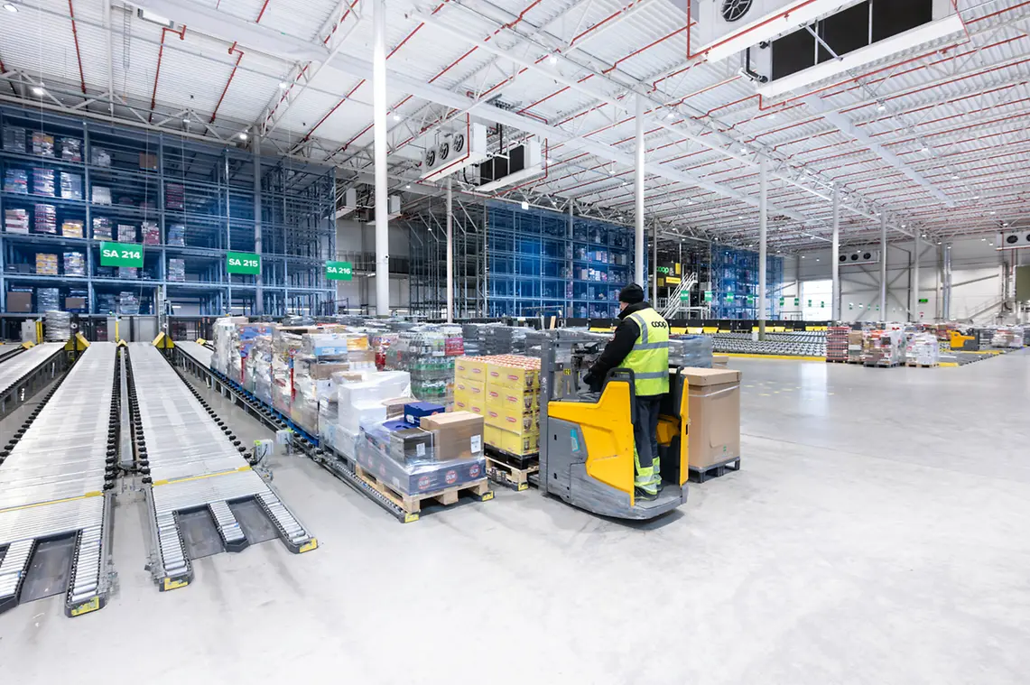Coop ir viens no vadošajiem pārtikas mazumtirgotājiem Zviedrijā, ikdienā pārvaldot vairāk nekā 800 veikalus pa visu Zviedriju. Pieaugošās prasības piegādes procesos, norādīja, ka Coop bija nepieciešams nomainīt esošo infrastruktūru, lai kļūtu efektīvāki un ilgtspējīgāki. Mērķis bija apvienot līdzšinējās manuālās darbības noliktavas vienā augsti automatizētā izplatīšanas centrā, kas spēj apstrādāt pasūtījumus kā standarta temperatūras, tā arī vidēji zemas temperatūras zonās.