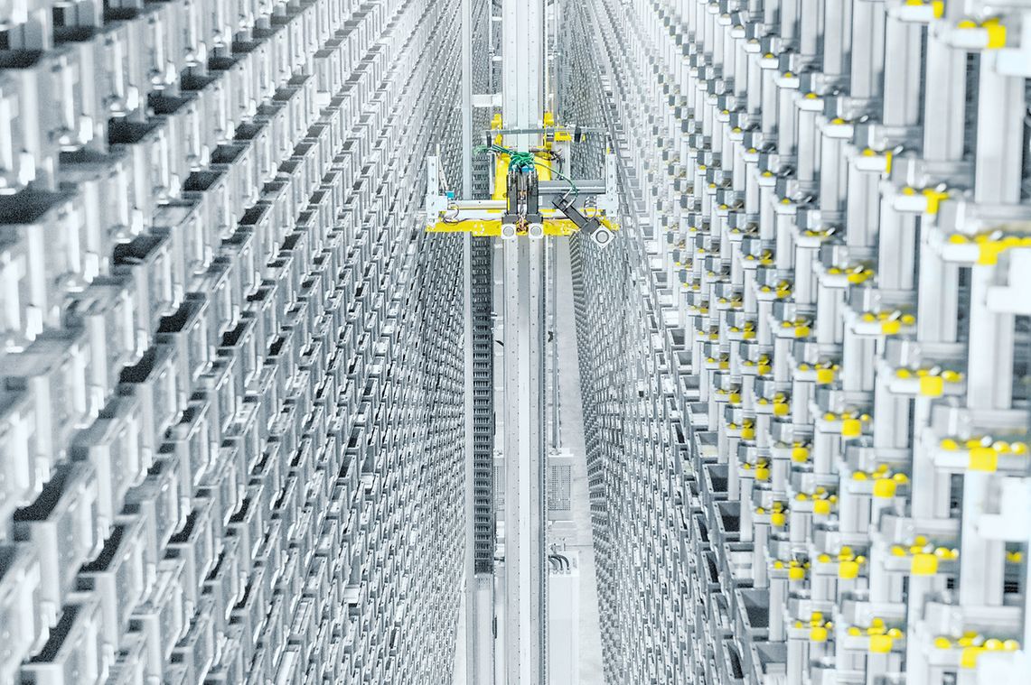 Snelle en middelgrote verplaatsers worden via het transportsysteem naar de SSI Miniload met twee gangen voor opslag getransporteerd. De overige producten worden opgeslagen in de SSI Carrousel, die plaats biedt aan 11.000 bakken.