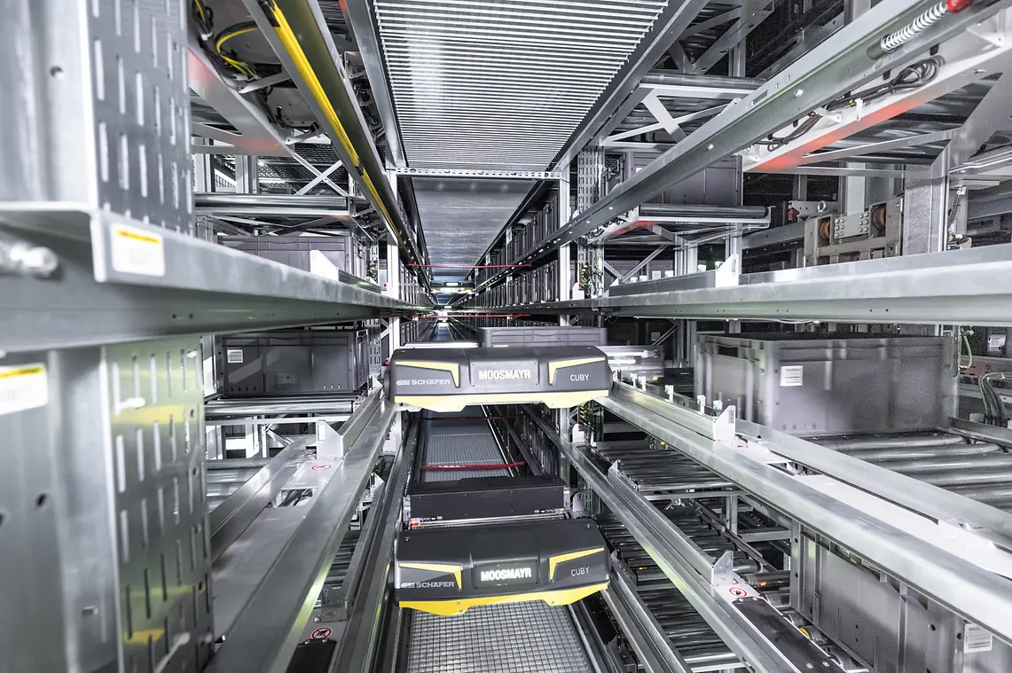 Sinds de ingebruikname in 2021 rijden 36 SSI Cuby-shuttles op 18 niveaus in twee gangpaden met een snelheid van maximaal 2,5 m/s. Wanneer een klantorder wordt geactiveerd, halen de shuttles binnen enkele seconden de benodigde artikelen op en brengen ze de bakken met behulp van een shuttle-lift naar het transportsysteem.