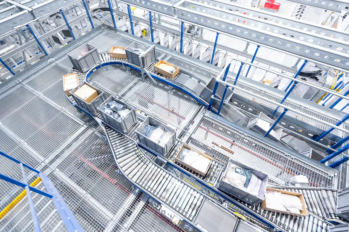 SSI SCHÄFER realiseerde dit door in het nieuwe e-commerce fashion-magazijn op een oppervlakte van meer dan 60.000 m² een uiterst complexe, hoogdynamische intralogistieke oplossing te installeren. Het totale systeem draait 24/7 en verwerkt 70.000 orders per dag. Piekprestaties tot 600.000 items zijn al bereikt. De apparatuur omvat transportsystemen voor containers en dozen, een picktoren met vier niveaus en een SSI Miniload opslagsysteem voor kleine onderdelen met meer dan 600.000 opslaglocaties bij driedubbele opslag. Het hart van het systeem is de SSI Carrier, geïmplementeerd in zes modules die elk drie niveaus beslaan en uitgerust zijn met 120.000 zakken. Dit schaalbare overhead transportsysteem combineert transport-, buffer-, sorteer- en sequencingfuncties in één systeem en maakt volautomatische assemblage van meerdelige klantorders mogelijk terwijl de producten worden beschermd. Fast movers uit retourzendingen worden tijdelijk opgeslagen in de dynamische buffer van de pouch sorter, waardoor ze direct beschikbaar zijn voor nieuwe orders.