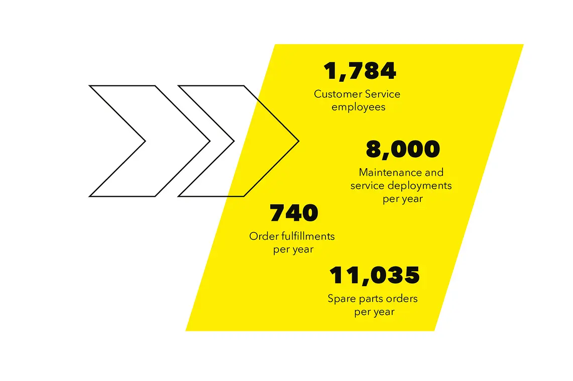 We streven ernaar om je maximale service te garanderen met ons hele team en onze producten. Het hele jaar door staan onze medewerkers voor je klaar, overal ter wereld, om je snel te helpen als je hulp of reserveonderdelen nodig hebt.