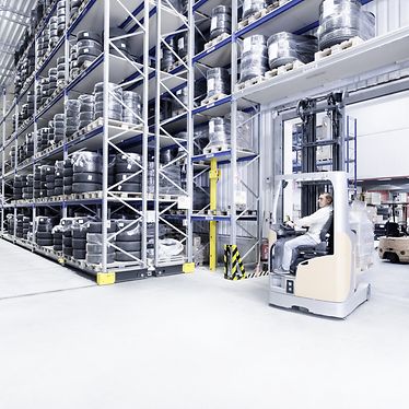 Takket være vogner som kan kjøres innunder kan hjulstablene legges inn og tas ut fra lager fra gulvet, både raskt og sikkert