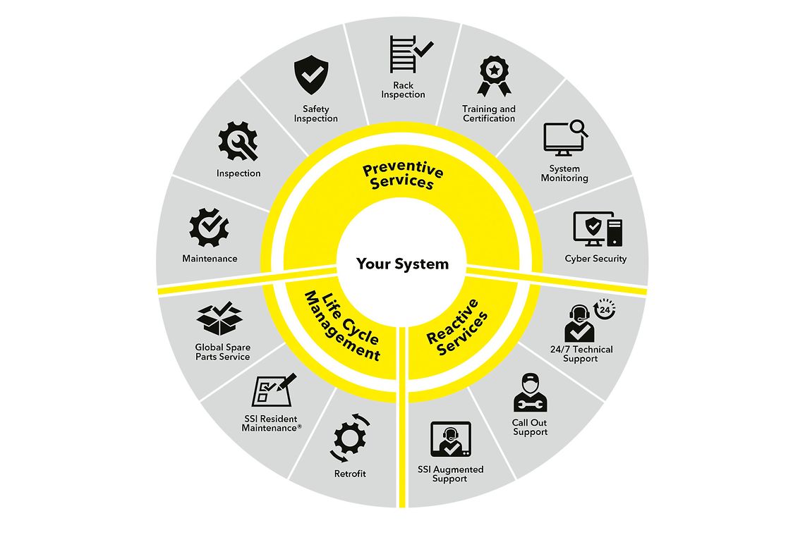 Vi kjenner nøkkelen til vellykket logistikk: maksimal tilgjengelighet og korte responstider når service er nødvendig. Derfor tilbyr vi et bredt spekter av tjenester og vår Support 4.0-plattform, som benytter moderne teknologier som databaserte, forebyggende vedlikeholdstiltak og fjernsupport ved hjelp av Augumented Reality.