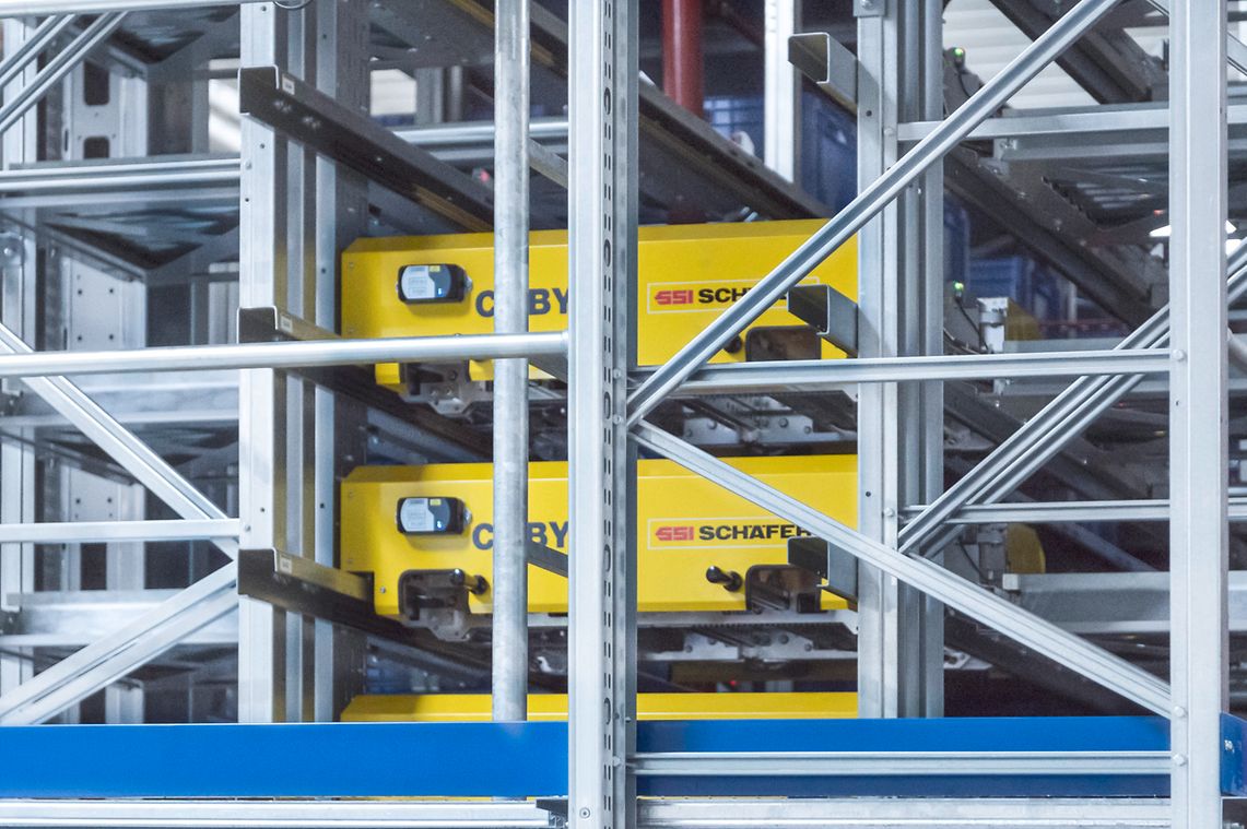 Apesar do espaço limitado disponível, a solução de movimentação de materiais conseguiu interligar perfeitamente os diferentes postos de trabalho e áreas de armazém. Misumi é agora a orgulhosa proprietária de um sistema de fluxo de materiais poderoso e aberto que possui capacidade de buffer suficiente para lidar com os níveis de pedidos à medida que eles flutuam durante o dia. No centro do sistema está o armazém vaivém, que permite um armazenamento totalmente automatizado e, graças ao seu design compacto, uma utilização óptima do espaço disponível. A SSI SCHAEFER instalou o armazém shuttle, que foi construído com 580 toneladas métricas de aço e tem espaço para 66.000 contêineres, no final de 2019. Atualmente, ele armazena 200.000 itens em 10 corredores e 22 níveis e cobre uma área de 39 m x 46. m. O shuttle SSI Cuby de nível único, que pode manusear contêineres e caixas, é usado dentro do armazém shuttle. A Misumi utiliza cerca de 56.000 contêineres retornáveis LTF 6280 do portfólio da SSI SCHAEFER. Destes, aproximadamente 46.000 são utilizados como contêineres de estoque no armazém de transporte, enquanto o restante é utilizado para consolidação de pedidos. Dois elevadores, instalados na parte frontal de cada corredor, garantem um elevado grau de desempenho técnico do sistema e um elevado nível de fiabilidade no armazém shuttle. O sistema de transporte conecta as duas áreas do armazém com os vários postos de trabalho – tanto ao nível do solo como na plataforma de aço – eliminando assim quase todos os deslocamentos. O sistema também inclui seis alças transportadoras – três alças umas sobre as outras, por nível – nas quais o armazenamento, a recuperação e os contêineres vazios são transportados e distribuídos entre os locais de armazenamento, coleta e expedição/embalagem. O armazém vaivém e o sistema de transporte são controlados pelo software de logística WAMAS® da SSI SCHAEFER.