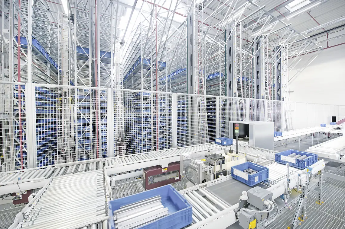 O processo downstream e o controle da planta são realizados via SAP. Além disso, um armazém alto de 5 corredores e uma máquina automática de armazenamento e recuperação com sistema miniload de 7 corredores abrigam as diversas peças automotivas para armazenamento até serem necessárias para a fabricação. Numerosos componentes do sistema de transporte, bem como o uso de aplicações robóticas para despaletização automatizada, garantem alta eficiência de processo no fluxo de material.