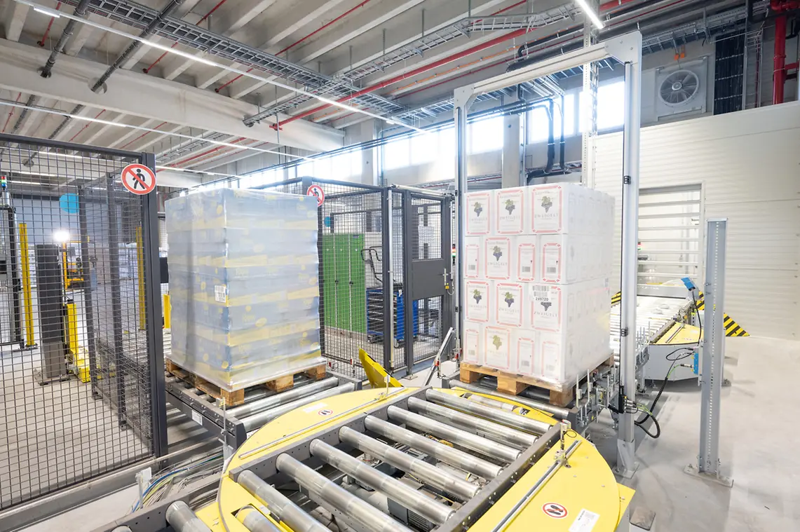 Pe lângă cele 7.500 de locații de depozitare din depozitul manual, noul depozit de paleți complet automatizat constituie un real upgrade de capacitate: oferă spațiu pentru un total de 11.000 de paleți cu depozitare dublă adâncime și permite o performanță de top chiar și în perioadele de vârf. cu patru mașini de stocare-recuperare SSI Exyz eficiente din punct de vedere energetic. După cum sa solicitat, depozitul automatizat a fost conectat la o clădire de expediere și la o hală existentă prin intermediul unui sistem de transport bidirecțional, care asigură că mărfurile pot fi mutate în mod flexibil în și din depozit.