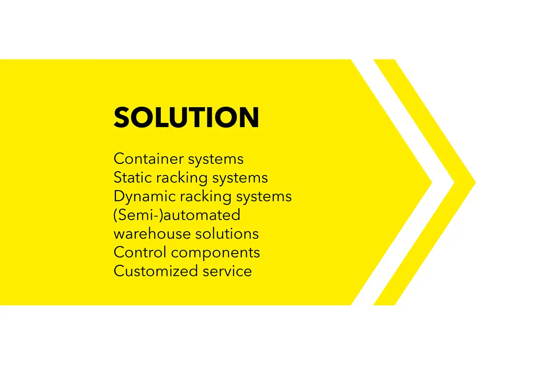 The big picture. Utmaningen för er är att anpassa lagerlogistiken till de senaste trenderna och en konsekvent tillväxt. Det gör det ännu viktigare att ha individuellt anpassade, framtidssäkra lösningar från en enda källa, integrera dem sömlöst i era processer och sedan skala upp eller utöka dem vid behov.